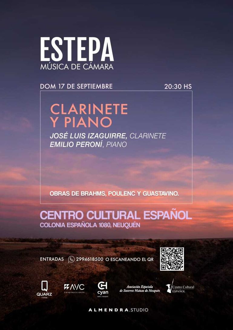Se realizará este DOMINGO 17 de septiembre a las 20:30hs en el Centro Cultural Español de Neuquén (Colonia Española N°1080). Los protagonistas serán dos de los más destacados músicos que actualmente residen en nuestro país: el clarinetista venezolano José Luis Izaguirre y el pianista argentino Emilio Peroni. Ambos son solistas de jerarquía que además frecuentan continuamente distintas formaciones de cámara. Juntos abordarán tres obras hermosas y exigentes para este dúo: la Sonata de Francis Poulenc, la Sonata de Carlos Guastavino y la Sonata N°2 de Johannes Brahms.