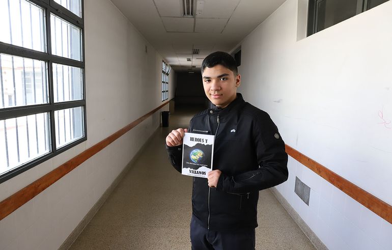 Enzo tiene dificultades para socializar. Pero es un libro abierto cuando plasma sobre el papel todas esas historias fantásticas que le rondan en la cabeza desde hace algunos años, cuando en pandemia de Covid-19 comenzó a escribir viñetas. Esos instantes de pura imaginación llenaron varios cuadernos. Ahora, el estudiante, de 14 años, escribió su primer libro "Héroes y Villanos". Sesenta páginas de ficción con referencias históricas que sorprendieron. "Es un mundo donde los superhéroes son culpados por los humanos por iniciar las dos guerras mundiales", resumió Enzo Miguel Parada García.