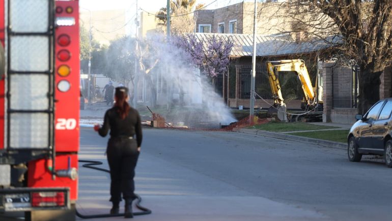 Raúl Cabeza, subcomisario y segundo jefe del Cuartel Central, precisó a LMNeuquén que la alerta se recibió cerca de las 14 horas. “Se despachó una dotación de bomberos al lugar y al llegar constataron la rotura de un caño de 90 milímetros de gas, enterrado aproximadamente a un metro de profundidad”, explicó.