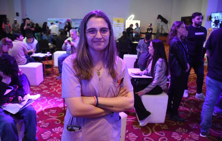 Otra joven que llamó la atención en la primera jornada del evento fue Rafaela. Vestida con un ambo verde grisáceo, la futura nutricionista de 22 años aprovechó el uniforme que iba a utilizar horas más tardes con su grupo de estudio en la Uflo para presentar personalmente su hoja de ruta en las más de 20 organizaciones que se sumaron a la expo organizada por la Subsecretaría de Capacitación y de Empleo de la Municipalidad de Neuquén.