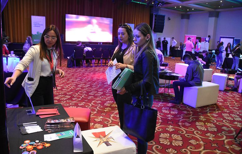 “Están recepcionando curriculum vitae y volvemos a tener el laboratorio CV, que es un espacio donde los jóvenes pueden venir con su currículum impreso para que desde las subsecretarías de Capacitación y de Empleo le den tips para mejorar esa hoja de vida. Después de eso, pueden acercarse a los stands de las empresas y presentarlos en forma digital o impresa”, explicó.