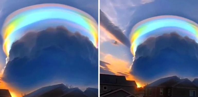 Se asemeja a los que podemos encontrar en manchas de aceite, alquitrán o gasolina en superficies de agua. Otro fenómeno climático parecido a la irisación. Las nubes irridiscentes son el resultado de la difracción de la luz solar a través de las particulas de agua o cristales de hielo que las componen. Los de mayor tamaño pueden provocar halos.