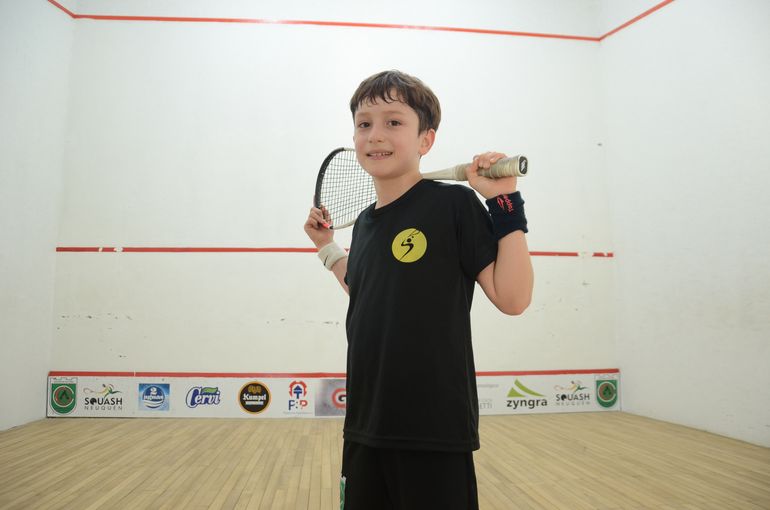 Es un niño de 9 años que la rompe en el squash. Entrena en el Club Alemán de Neuquén. Su historia y la promesa de llegar a Europa.