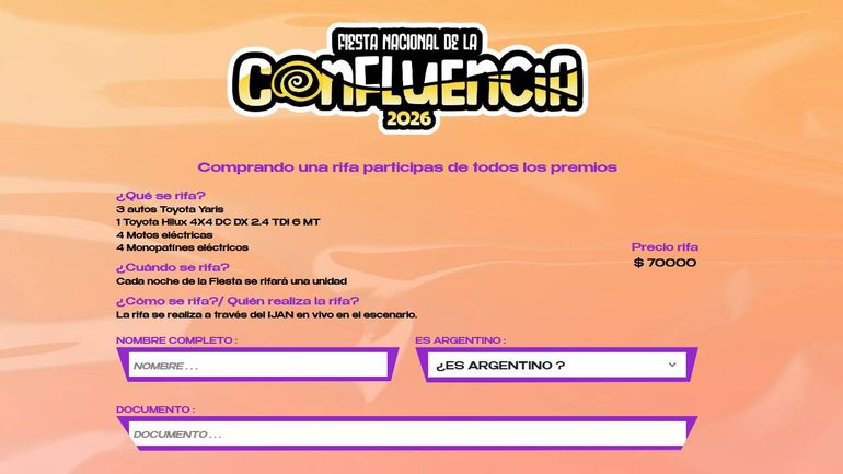 Fiesta de la Confluencia 2026: cómo comprar la rifa