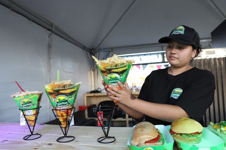 La mayoría de puestos de comida tienen en su menú lomos, hamburguesas u otros sándwiches, por lo fácil que es de comer al paso. Según el sondeo realizado por LM Neuquén desde el predio, las hamburguesas salen $20.000 en promedio; los lomos rondan entre $25.000 y $28.000 y sándwiches de shawarma, cerca de $25.000.