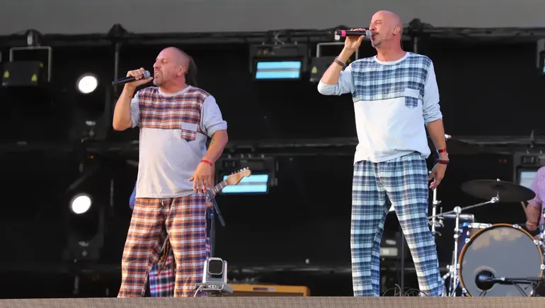 Con sus pijamas azules y rojos a cuadros arremangados por el calor agobiante, los integrantes de Bersuit Vergarabat se subieron al escenario mayor para revivir los clásicos de siempre. "Toco y me voy" hizo saltar a los más futboleros, mientras las pantallas gigantes mostraban imágenes de Diego Maradona. Siguió "Desconexión Sideral", "Vuelos" y "Devolvé la bolsa" sirvieron para repasar sus casi 38 años de carrera artística.