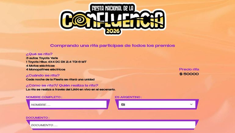 Paso a paso, cómo comprar la rifa de la Fiesta de la Confluencia