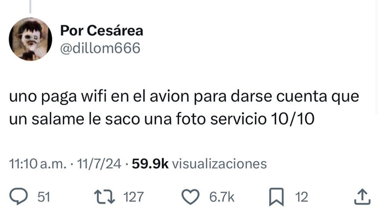 Después del cruce, Dillom eligió cerrar el momento con humor: "Uno paga wifi en el avión para darse cuenta que un salame le sacó una foto servicio 10/10". A pesar del momento de tensión, los usuarios en redes sociales avalaron la reacción del cantante y destacaron la cobardía de quienes publican agresiones de manera on line, pero en persona no se hacen cargo de sus actos.