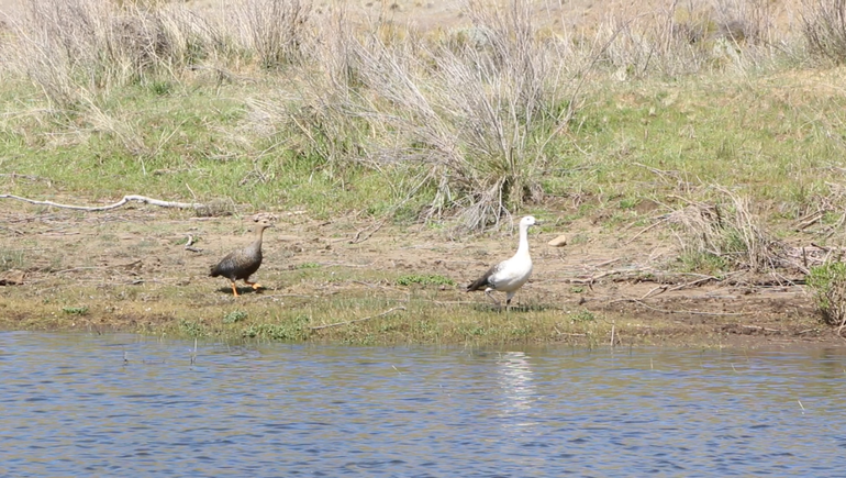 Sin embargo, el avistaje más destacado fue el cauquén, también llamado “pato patagónico”. Las hembras marrones y los machos blancos, estas aves semiacuaticas resaltaban en el ecosistema del río. Generalmente en parejas y a veces con crías.