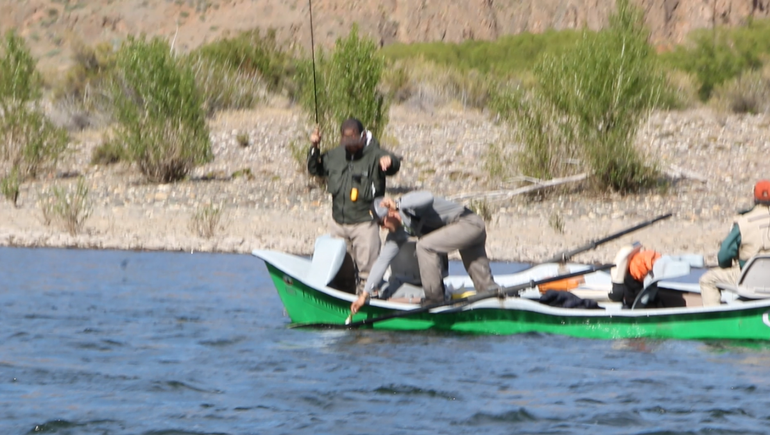 De a ratos el bote se desplazaba cerca de las orillas pobladas de sauces y otros árboles. Allí se levantaban cientos de insectos que revoloteaban a nuestro alrededor. “Se llaman caddis”, me dice el guía. En esta época, son el alimento principal de las truchas de los ríos paragónicos. Es por esto que los pescadores la imitan al atar sus moscas. Ya sea en su etapa adulta, que flota, o en su etapa larvaria que se desplaza en el agua.