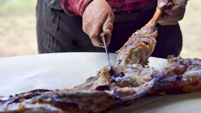 Desde los fogones que se encuentran a la vista de la gente, el chivito al asador se hace desear y sus cocineros no dejan de lado su identidad, con sus atuendos autóctonos, muestran a los visitantes la preparación del plato fuerte de la fiesta: el tradicional chivito al asador.