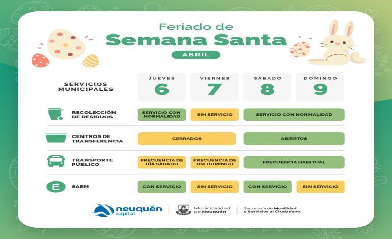 Con motivo de la celebración de Semana Santa, este jueves y viernes desde el área de Prensa de la Municipalidad informaron que no habrá atención administrativa en ninguna de las dependencias municipales, aunque aseguraron que mantendrán guardias para emergencias.