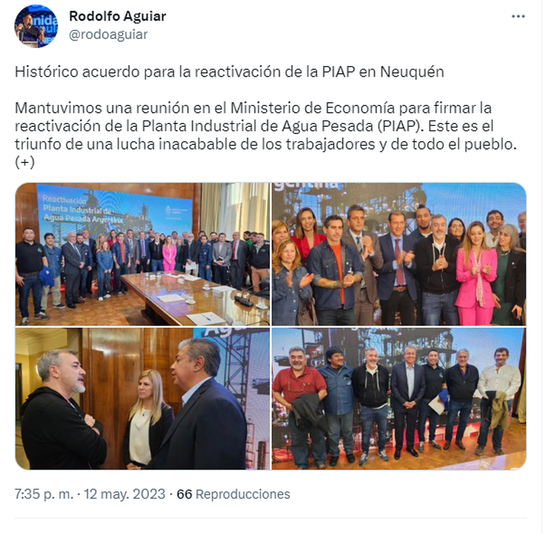 También estuvieron en la presentación la presidenta de la Comisión Nacional de Energía Atómica (CNEA), Adriana Serquis, y la secretaría de Energía, Flavia Royón. Serquis consideró que la producción de agua pesada es estratégica para el país. El principal destino de la producción de la PIAP son los reactores CANDU de las tres centrales nucleares argentinas: Embalse, en Córdoba, y las dos Atucha, en la provincia de Buenos Aires.