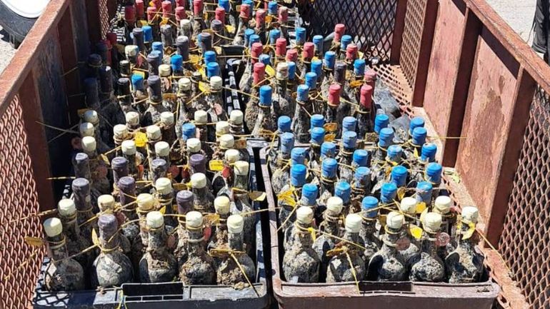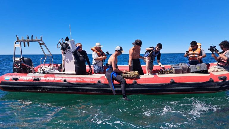 Embarcados en gomones, representantes de cada bodega navegaron hasta el punto indicado, donde un equipo de buzos especializados de la organización de buceo Cota Cero emergió desde las profundidades con las jaulas.Ante la mirada expectante de medios locales y nacionales, salieron a la superficie tres lotes de botellas que el mar ya había abrazado entre musgos, algas y huellas del fondeo marino adheridas al vidrio.