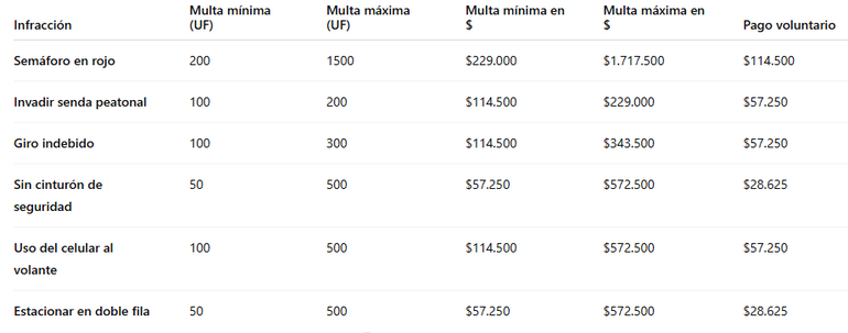 A continuación, el detalle de las principales multas según el valor vigente de la UF ($1.145):