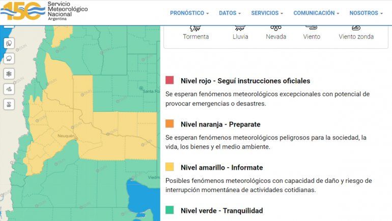 Estas condiciones se esperan en la cordillera, meseta del centro norte de las provincias de Neuquén y Río Negro, valles, región sur rionegrina, costa y cuenca de Río Colorado.