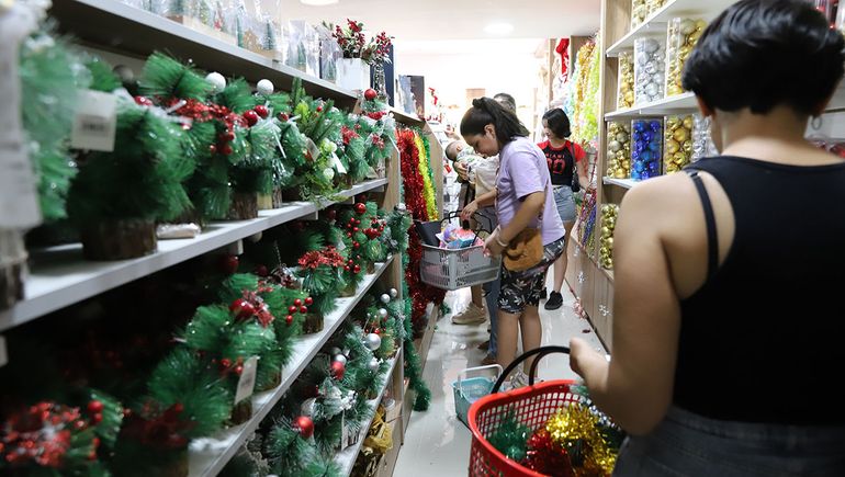 El sector de decoración para Navidad, hay muchas opciones económicas. Las coronas grandes para adornar la puerta de las casas están en 2.500 pesos, cuando en los supermercados salen 25.000. Los adornos de todos los tamaños y pinitos nevados para decorar la casa se encuentran al mismo valor.
