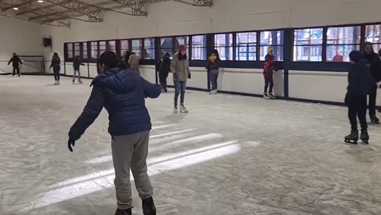 Con el inicio de las vacaciones de invierno, abrió la tradicional pista de patinaje sobre hielo ubicada en la ruta provincial 7, camino a Centenario.