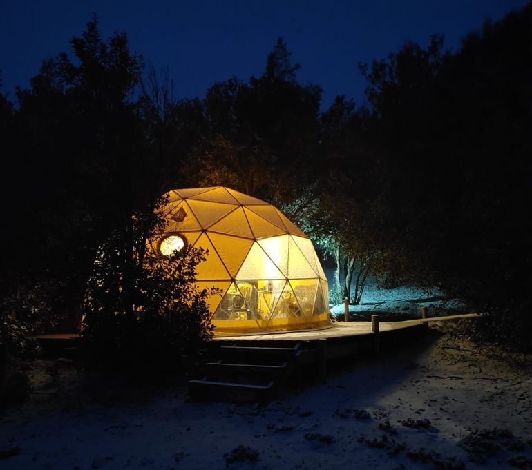 Los domos ofrecen el confort de una cabaña y el contacto directo con la naturaleza, en un entorno único.