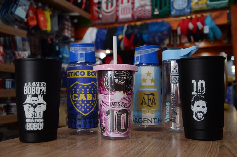 “Lo que más está saliendo es lo que tenga las tres estrellas, sea camisetas, bolsos, botineros, botellitas, mate o llaveritos”, describe el comerciante.
