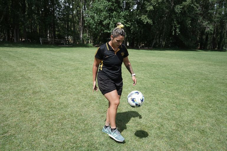 De chica se metía a jugar al fútbol con varones, que no le pasaban la pelota. Practicó voley, jugó en la selección neuquina, pero a los 18 decidió dedicarse a su verdadera pasión y hace 10 defiende los colores de la primera del fútbol femenino del club Pacífico.