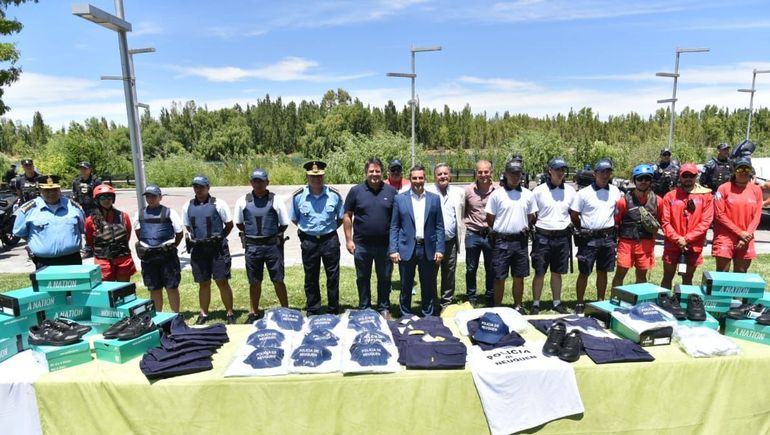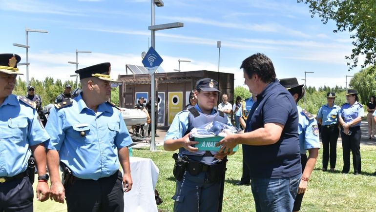 El intendente capitalino, Mariano Gaido, entregó en la mañana de este viernes, uniformes de verano para los 150 agentes que se desempeñarán durante el operativo de seguridad balnearia en las costas del Limay.