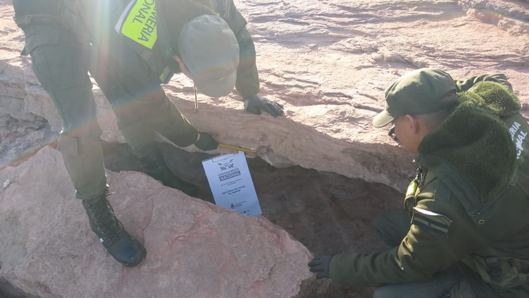 Los gendarmes brindaron la seguridad en el lugar y apoyo al personal técnico, como se plantea en el protocolo de actuación para este tipo de procedimientos. Además, se dio intervención al Juzgado Federal N°2 de Neuquén, en el marco de la Ley 25.743 "Protección del Patrimonio Arqueológico y Paleontológico".