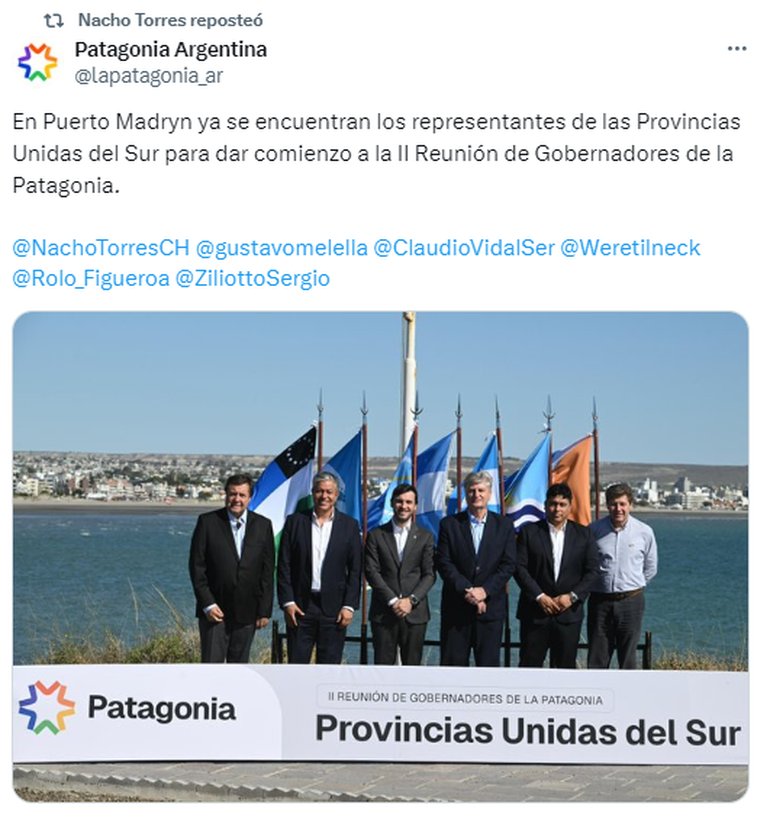 En Madryn confluyeron los legisladores con los gobernadores Rolando Figueroa, de Neuquén; Alberto Weretilnek, de Río Negro; Ignacio Torres, de Chubut; Claudio Vidal, de Santa Cruz; Gustavo Melella, de Tierra del Fuego, y Sergio Ziliotto, de La Pampa. Los mandatarios programaron en el Hotel Rayentray, de Madryn, el 2° Encuentro de Gobernadores de la Región Patagónica