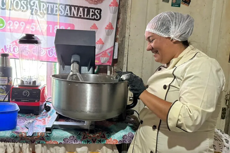 “Llegar al crédito para mí fue un impulso grandísimo, es un antes y un después en mi emprendimiento porque voy a poder automatizar la producción y hacer pasos más rápido”, contó entusiasmada ante la posibilidad que se le presentó de comprar una amasadora, una batidora y una licuadora.