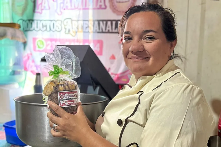 “Cuando llegué y aún no conseguía trabajo, compré grasa y salíamos a vender pan con chicharrón con mis hijos y nos fue muy bien, incluso la gente nos pedía más y así empecé a hacer pan dulce, budines y otras elaboraciones”, rememora sobre sus inicios en la tarea de emprender.