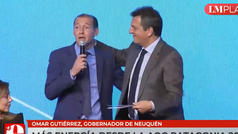 Gutiérrez antecedió a Massa en el discurso y destacó que "sin la necesidad de firmar un papel, solo con el valor de la palabra empeñada" se llegó a importantes acuerdos con las empresas para generar las inversiones necesarias y relanzar Vaca Muerta.