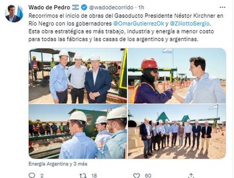 El ministro del Interior de la Nación también rescató el trabajo y compromiso de las empresas argentinas. “Tienen la tecnología, y la capacidad para construir este gasoducto que también nace a partir de una ley que le permite dar financiamiento. El gasoducto es más trabajo, más industrias y energía barata en todas las casas de las familias de los argentinos”, subrayó.