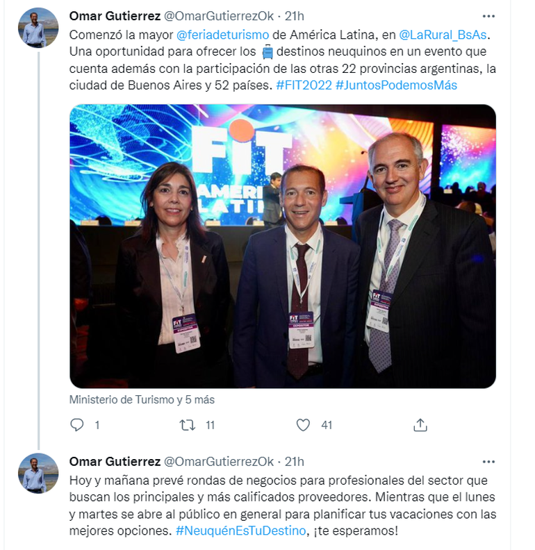 “Estoy muy contento con todo lo que se ha hecho en materia turística, y estoy convencido que el turismo es una de las columnas vertebrales que hacen al desarrollo estratégico, porque es una de las actividades con la que vamos continua y permanentemente convirtiendo y refundando nuestro desarrollo económico en la provincia del Neuquén”, manifestó el gobernador y concluyó diciendo que “ha sido fundamental el turismo para la recuperación de la actividad económica de la provincia luego de la pandemia”.