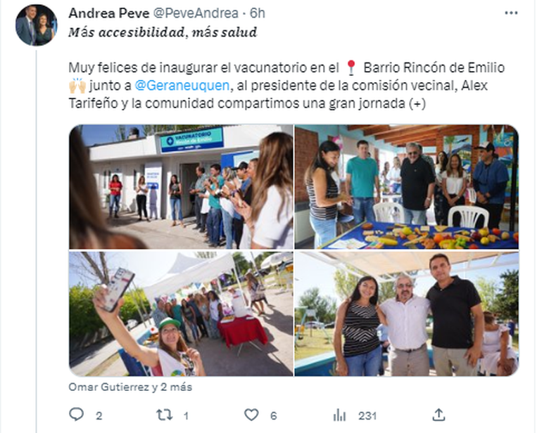 La ministra de Salud, Andrea Peve inauguró este sábado el vacunatorio “Rincón de Emilio” de la Ciudad de Neuquén. Funcionará de lunes a viernes como vacunatorio y durante el fin de semana, como una Estación Punto Saludable, la primera en la provincia.