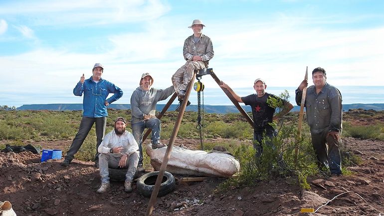 Las tareas de excavación requirieron cinco campañas paleontológicas y más de treinta días de trabajo de campo. Durante ese tiempo, para romper la roca portadora se utilizaron mazas, puntas, martillos, cortafierros, martillos rotopercutores, martillos neumáticos y cortadoras de roca. Para trasladar adecuadamente los huesos se armaron ocho bochones de yeso y arpillera, de los cuales, los más livianos fueron cargados en camionetas mediante un trípode y un malacate, mientras que, para los más pesados, algunos más de una tonelada, se necesitó la intervención de una máquina retroexcavadora y dos camiones.