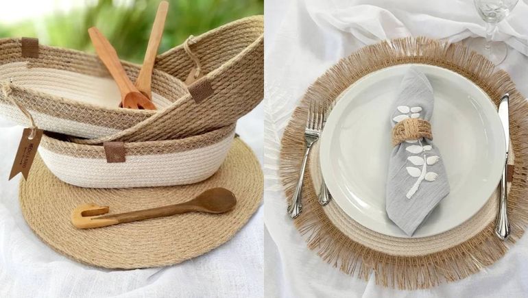 Así, empezaron a alimentar el interés por la cestería nórdica y el uso de fibras naturales para sumar otras texturas a los textiles y las estampas artesanales que ya formaban parte de su catálogo. "Nos apasionan las fibras naturales, usamos yute con cestería nórdica y hacemos platos de sitio, bandejas decorativas, bolsos, cestos y todo eso hecho por nosotras", relató.