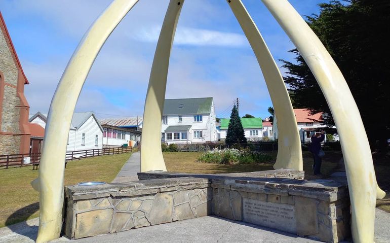 En el acceso a la Catedral Anglicana de Puerto Argentino un monumento hecho con huesos de ballena azul lleva una inscripción sobre piedra que dice “en conmemoración del centenario de posesión británica de las Falkland Islands 1833-1933”. Creo que es lo mas infame que se puede ver en Malvinas. Una muestra de la obscenidad colonial.