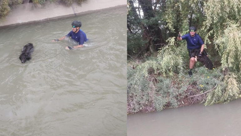 Miguel Aravena, un policía de la División Tránsito Villa Obrera de Centenario, salvó a un perro que se ahogaba en el canal de riego de Vista Alegre. El miércoles 11 por la tarde mientras andaba en bicicleta junto a su hermana observó que el can era arrastrado por el agua.