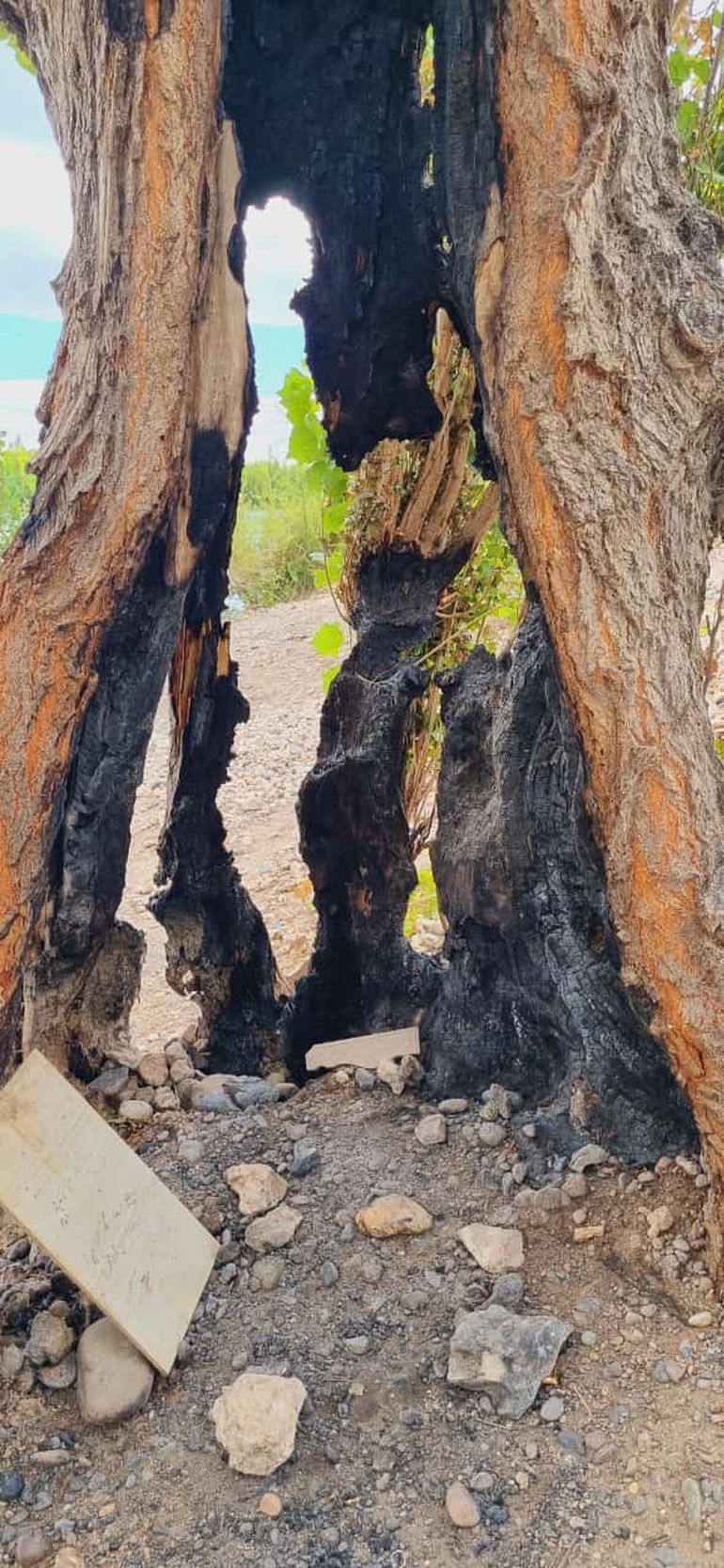 "Es lamentable ver esto, con las veces que hemos hablado de cuidar los árboles, los sauces, los álamos, porque no puede ser que vengan a hacerse un asado a la costa del río, prendan fuego para protegerte del viento al costado de un árbol y lo terminan dejando así", advirtió.