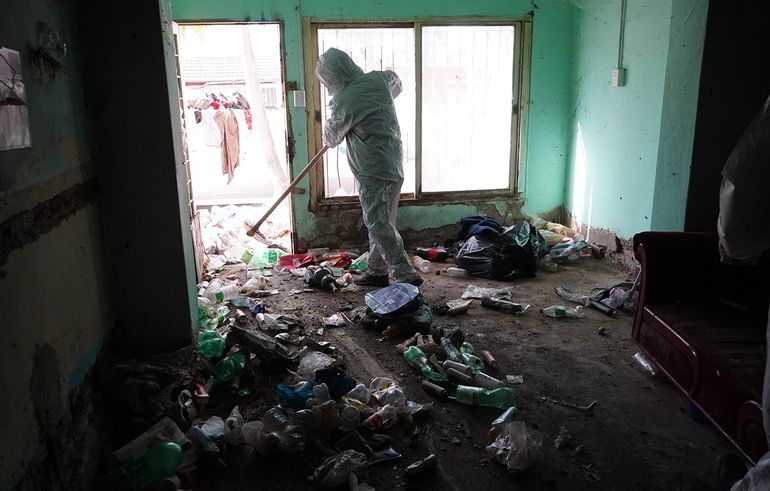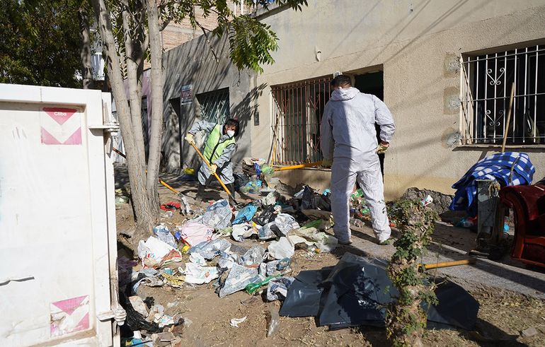 Cristian Haspert, subsecretario del área, contó que cuando entraron se encontraron con una situación “desesperante”. “Había 1,20 metros de residuos acumulados entre ropa y comida”. “Todos los ambientes de la propiedad estaban igual: tanto comedor, cocina como la habitación”, dijo y contó que fue muy difícil avanzar por la cantidad de cosas que había y el olor nauseabundo de los alimentos que estaban en mal estado.