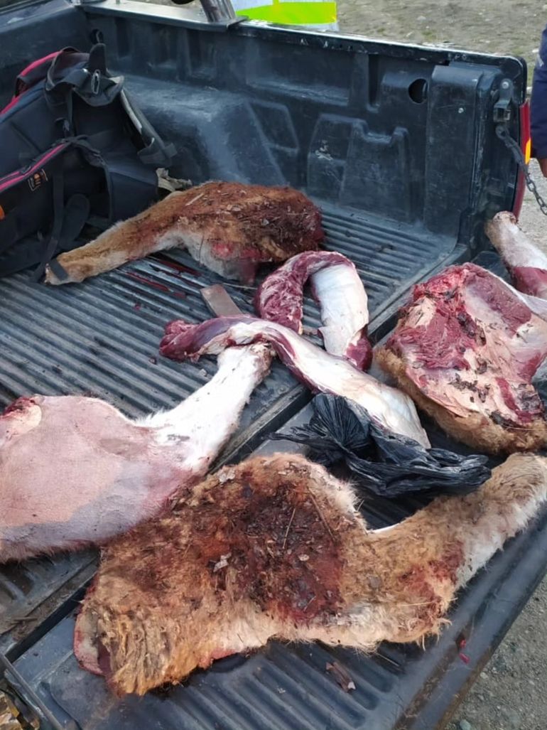 Durante el patrullaje, se indicó que el personal localizó a un grupo de residentes de la zona en pleno campo, junto al cuerpo sin vida de un guanaco, que ya estaba siendo despostado. En el lugar se incautaron, además, herramientas utilizadas para el faenado y el vehículo con el que los implicados se habían trasladado hasta el área.