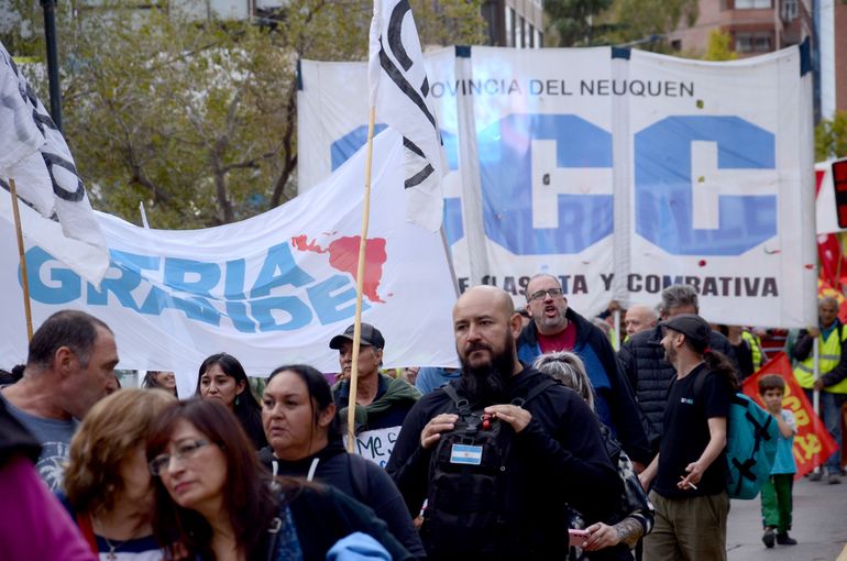 Este miércoles, desde primera hora de la tarde, columnas de trabajadores y trabajadoras comenzaron a congregarse en distintos puntos de la capital neuquina para marchar luego hacia el centro. Docentes, personal de salud, estatales, viales, jubilados, empleados de la actividad privada y hasta organizaciones sociales caminaron juntos en una manifestación que se sintió como un grito colectivo: “¡Basta de ajuste!”.