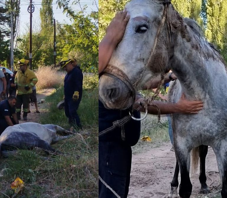 Previo a los dos siniestros, durante la tarde recibieron un llamado alertando sobre la caída de una yegua junto a su potrillo en un canal de riego. "Fue en la zona del Puente Simón, en el ingreso a Vista Alegre Sur, en pleno canal grande", contó.