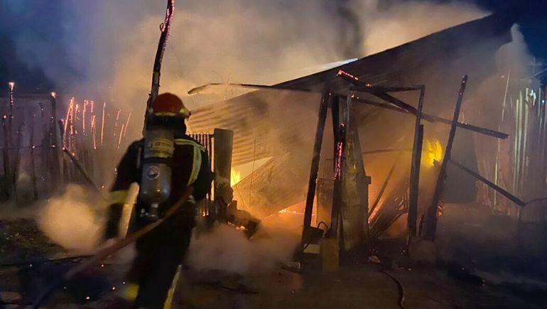 Ante esto, salieron dos dotaciones de bomberos hacia ambas direcciones. Sobre el siniestro ocurrido en la vivienda precaria explicó que "al llegar el incendio estaba generalizado" y que no ocupantes en el interior. "La única persona que dijo ser propietaria se encontraba durmiendo dentro de la vivienda y lo único que había escuchado fue una explosión y mucho humo y allí decidió salir de adentro de la casilla y el incendio se generalizó", señaló.