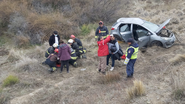 Tras el violento impacto, el hombre que acompañaba a la conductora pudo salir por sus propios medios y resultó ileso. Pero la mujer requirió de la ayuda de los bomberos voluntarios, en tanto la puerta le quedó trabada. Tuvo que ser retirada del habitáculo por una puerta trasera. Luego de ser rescatada, fue inmovilizada en una tabla para ser trasladada hasta la ambulancia, que la llevó hasta el hospital de Junín. "Tenía algunos dolores producto del azote del cinturón de seguridad. Pero se ubicaba en tiempo y espacio. Respondió coherentemente a las preguntas que le realizó el personal", indicó Rifo.