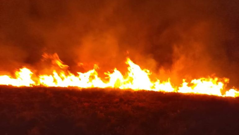 El incendio rural ya afectó 3.800 hectáreas de matorral y pastizal. Operan medios aéreos y brigadas en dos turnos para frenar el frente activo.