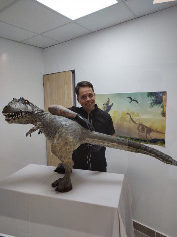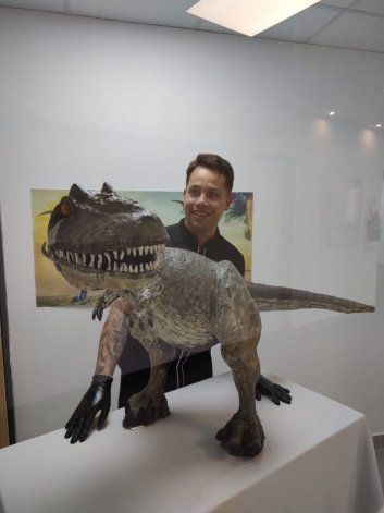 "Se me ocurrió proponerles hacer un dinosaurio de chocolate y la idea les encantó y ellos me pidieron a la estrella de su museo, el Giganotosaurus Carolinii. Empecé la escultura hasta en un 80% en la chocolatería y luego viajé hasta el museo donde estuve tres días para hacerle todos los últimos detalles. Modelando, tallando la escultura, los trabajos de pintura", contó a LMNeuquén Edgardo Presas.