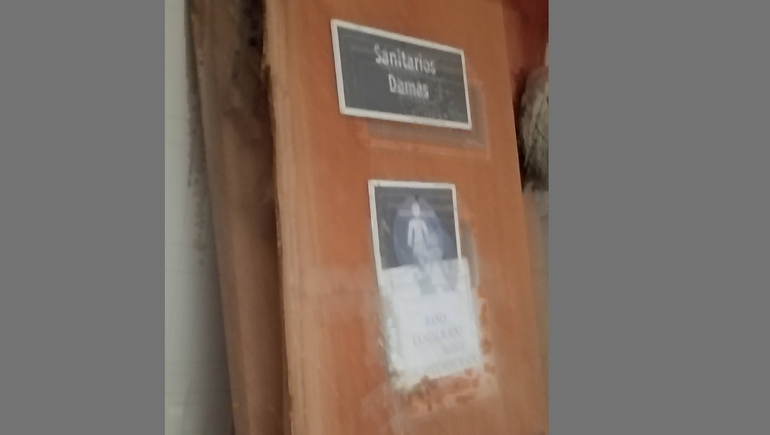 Además de la higiene, también comentó que las puertas de los baños están salidas y hay un cartel que dice "baño clausurado" desde hace mucho tiempo. También, en las fotos del posteo de facebook realizado por la mujer puede verse la puerta de uno de los cubículos cerrada con cinta de peligro y la acumulación de basura junto al cesto.