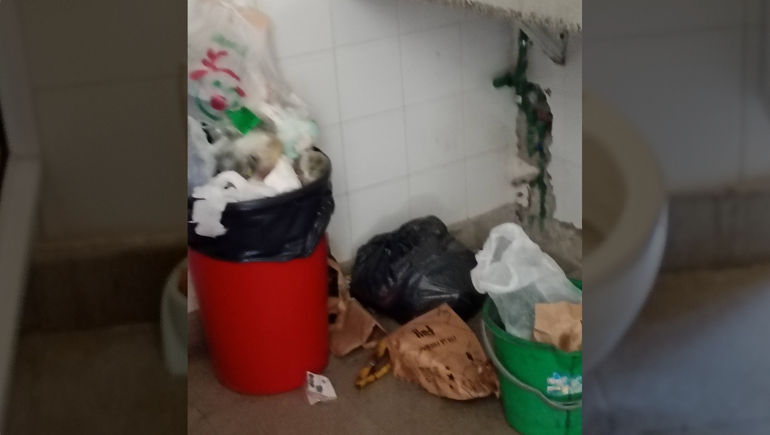"Es un desastre, no solamente la falta de higiene, sino también la falta de cestos para los residuos, entonces la gente también se acopla a eso y tira donde ve un tarro, que es en el baño, y entonces se va generando mugre", afirmó.