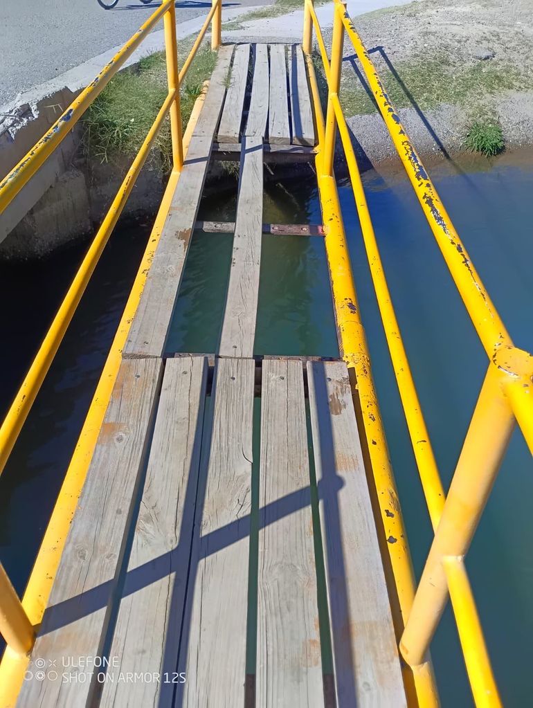 Por la tarde, personal municipal se acercó al lugar y encintó el puente con un cartel que decía peligro. Pero un rato después ya no estaba. Más tarde finalmente lo repararon.